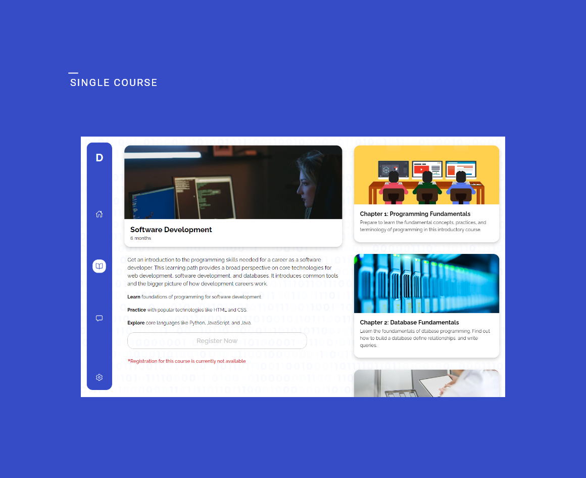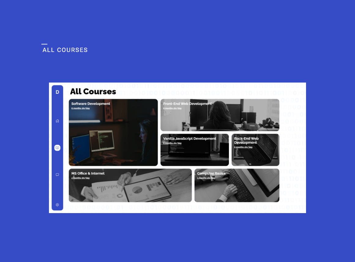 E-Learning website with courses, registrations, course description. Fully responsive website
