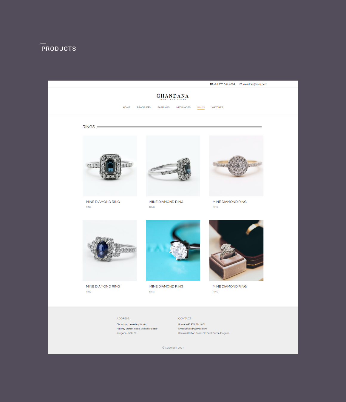 Sample demo for a online jewellery store showcase website